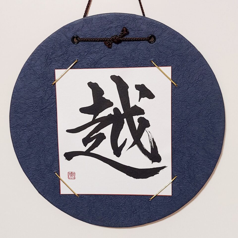 2025年の活動内容と奈津の毎日を表現した、和みの書【越】。