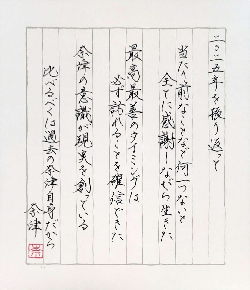 書道家としての活動の8年目である2025年は、諦めることなく目の前に起こる出来事を一つ、また一つと乗り越えることに重きを置いた1年間になりました。